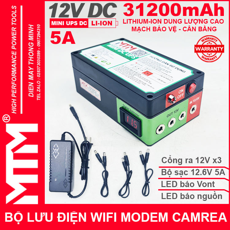 Bộ lưu điện wifi modem camera khóa cửa từ đèn quạt DC 12V 31200mAh 5A MTM – Mini UPS DC 12V