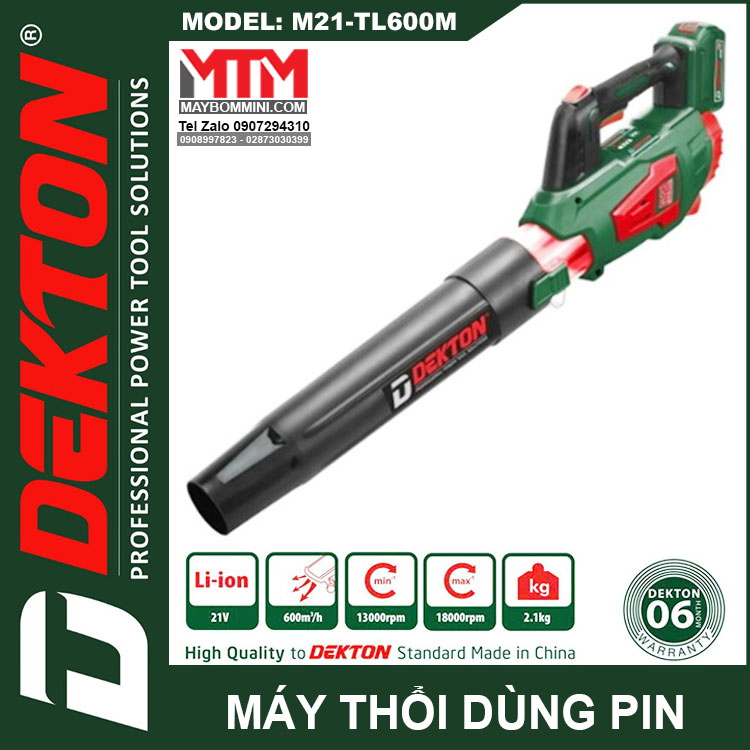 Chuyên phân phối máy thổi bụi thổi lá công suất lớn DEKTON M21-TL600M Turbo dùng pin chân phổ thông chuyên dụng siêu mạnh. Sử dụng cho nhiều ứng dụng khác nhau như thổi bụi, thổi lá, cứu hỏa, vệ sinh sân vườn, dọn dẹp lá cây, vệ sinh nhà cửa và thiết bị.