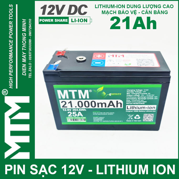 Pin đèn quạt tích điện 12V 21000mAh MTM chống nước tặng kèn dây nguồn jack DC. Pin này phù hợp cho thiết bị điện 12V như đèn LED, quạt tích điện, thiết bị DC 12V, nguồn dự phòng modem Wifi, pin hẹ thống năng lượng mặt trời công suất nhỏ và nhiều ứng dụng khác.